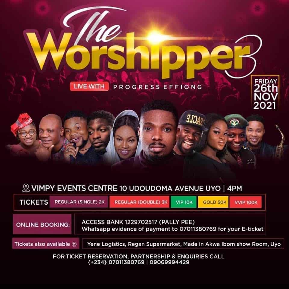 The Worshipper is a music concert and entertainment event hosted by one of Nigeria’s ace gospel music artist and producer, Progress Effiong, with the aim of glorifying God and reaching out to impact communities and persons with humanitarian services.